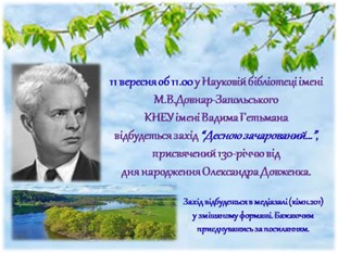 11 вересня у КНЕУ відбувся захід «Десною зачарований…», присвячений 130-річчю від дня народження Олександра Довженка.