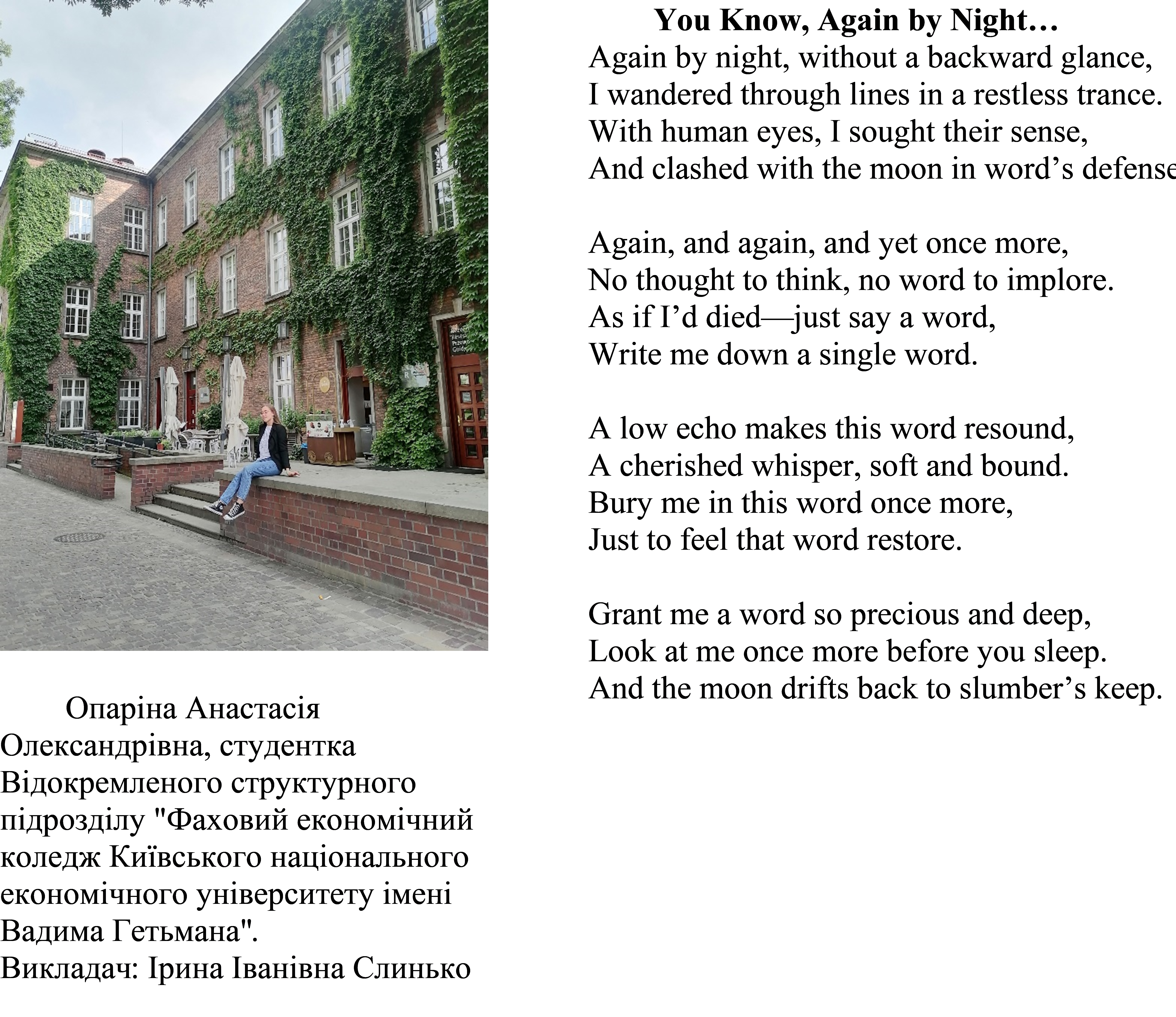 Олександр БОНДАРЕНКО група 3Л-44 (викладач Ольга ГУДКОВА)