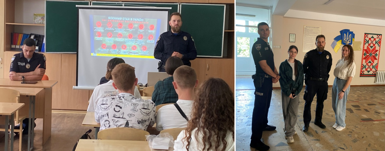 На обговорення були винесені дуже актуальні теми сьогодення : «Правила поведінки в умовах воєнного стану», «Інформаційна безпека», «Вербування молоді», «Спілкування з поліцейським», «Основні права людини», «Основні обов’язки людини», «Види відповідальності», «Шкідливі звички», «Юридичні поради підліткам» тощо.