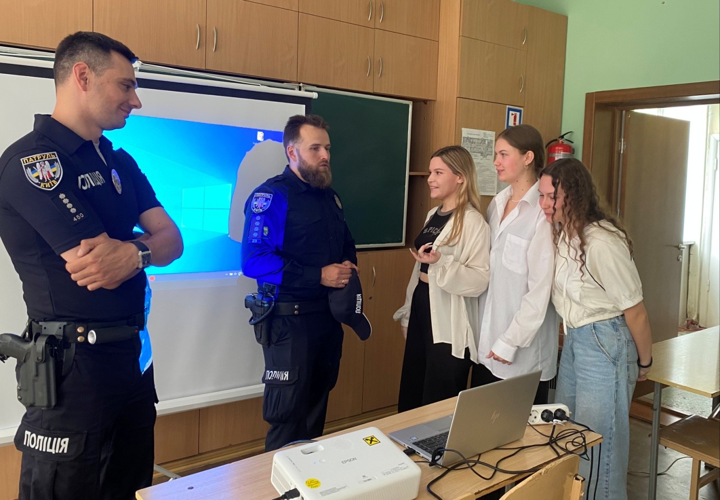 3 червня 2025 року у коледжі відбувся черговий просвітницький захід для здобувачів освіти 2 курсу спеціальності 073 «Менеджмент» та 076 «Підприємництво, торгівля та біржова діяльність» - зустріч з інспектором відділу зв’язків з громадськістю Управління патрульної поліції у м. Києві капітаном поліції Полюховичем М.М. та старшим інспектором відділу зв’язків з громадськістю Управління патрульної поліції у м. Києві капітаном поліції Міхеєвим М.С.