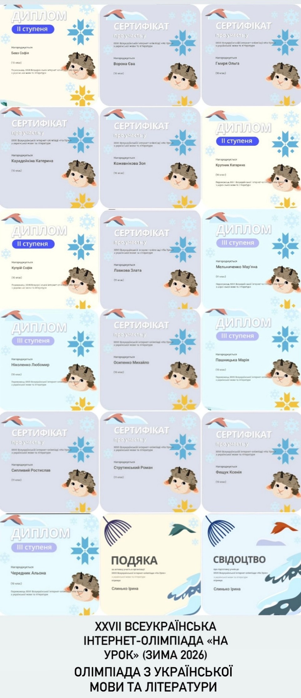 Упродовж місяця учасники брали участь у XXIV Всеукраїнській інтернет-олімпіаді «На Урок» з української мови та літератури, де продемонстрували свої знання та ерудицію.