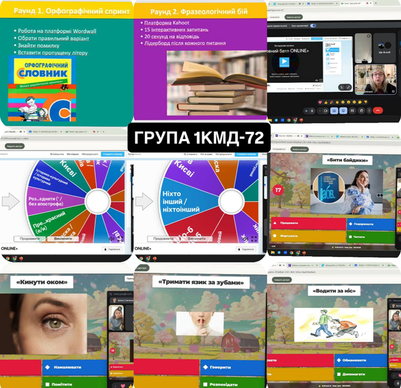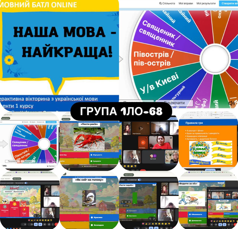 У групах 1ЛО-68 та 1КМД-72 було проведено пізнавальний та інтерактивний захід — вікторину з української мови «Мовний батл ONLINE», під час якої студенти мали змогу перевірити свої знання та кмітливість. Завдання виконувалися з використанням сучасних інтерактивних платформ, що зробило гру динамічною, цікавою та сприяло активній участі кожного учасника.