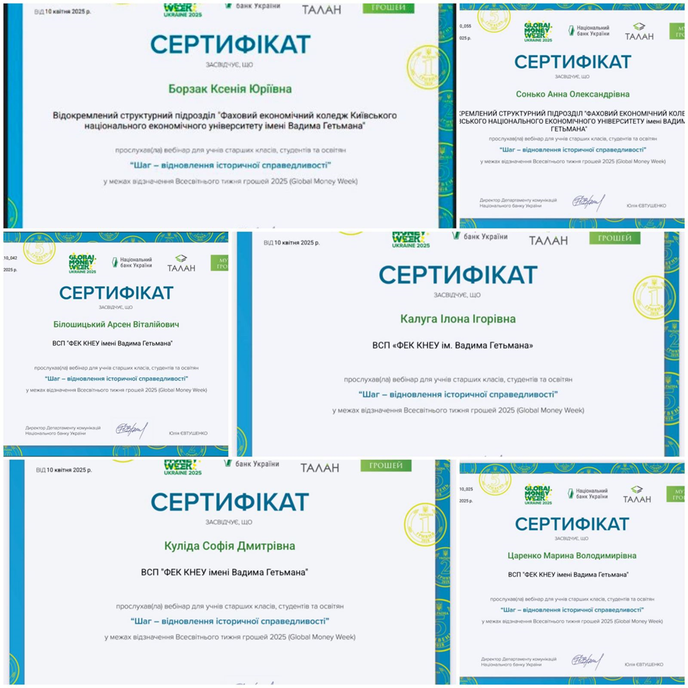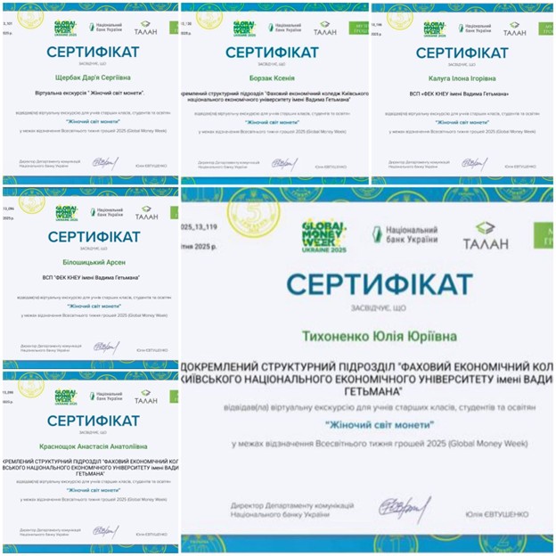 В рамках Всесвітнього тижня грошей 2025 (англ. Global Money Week 2025) здобувачі освіти ВСП «ФЕК КНЕУ ім. Вадима Гетьмана» із 17 березня по 20 березня 2025 року приймали участь у заходах, які проводились Національним банком України спільно з партнерами.