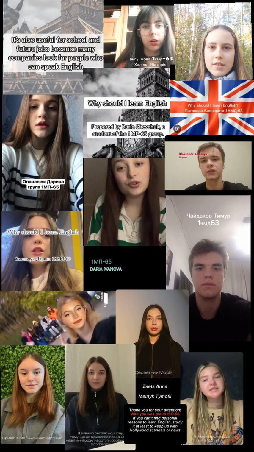 04 листопада студенти І курсу представляли проєкти на тему «Why should I learn English?» (Чому необхідно вивчати англійську мову) під керівництвом викладачів Тетяни КОЛЕСНИК, Валентини МИГОЛЬ та Ірини СЛИНЬКО.