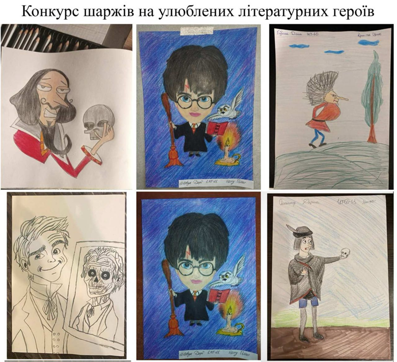 Серед здобувачів освіти 1 курсу в рамках тижня комісії Валентиною МИГОЛЬ проведений конкурс шаржів на улюблених літературних героїв.