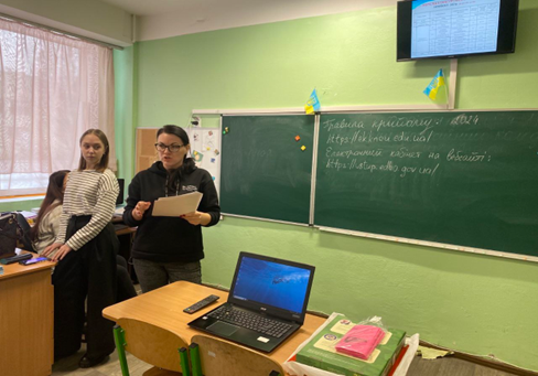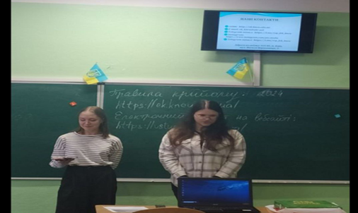 Профорієнтаційну зустріч провели викладачі коледжу Юлія Малютенко та Наталя Бурячок разом зі студентами випускних курсів Лесею Колесник та Анною Громовою.